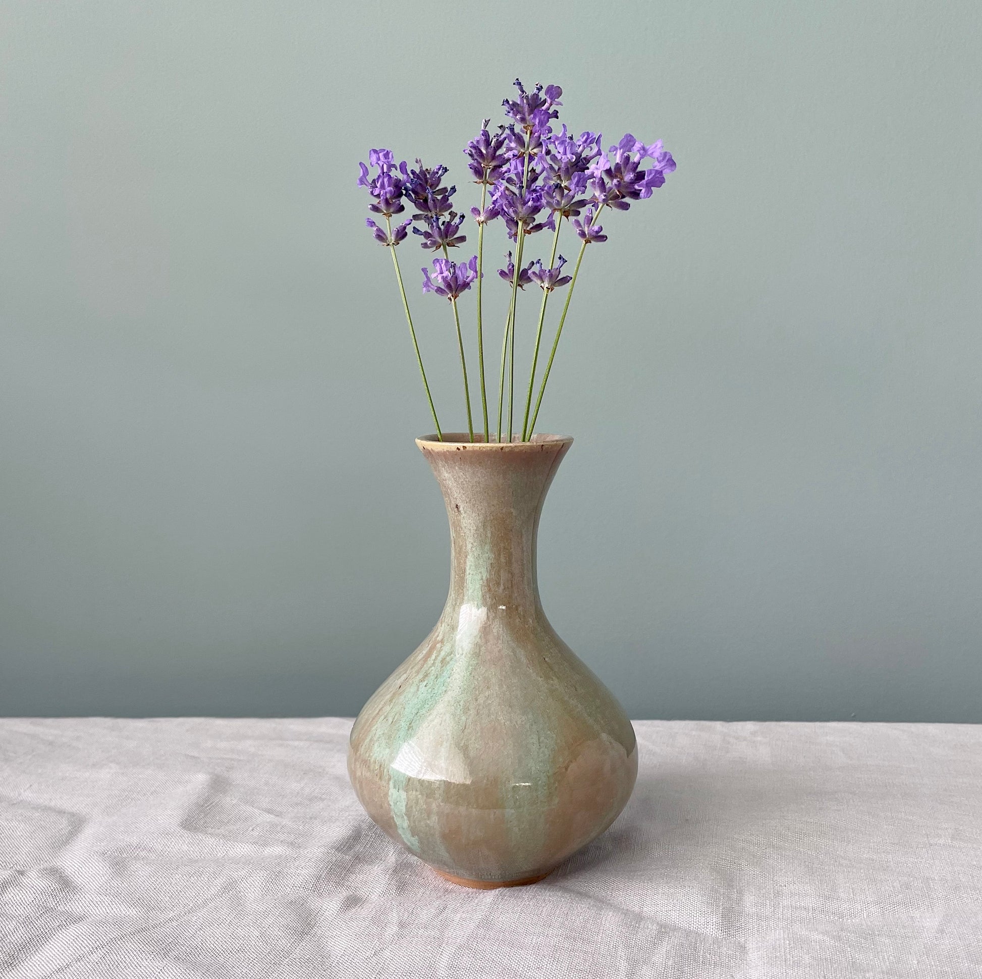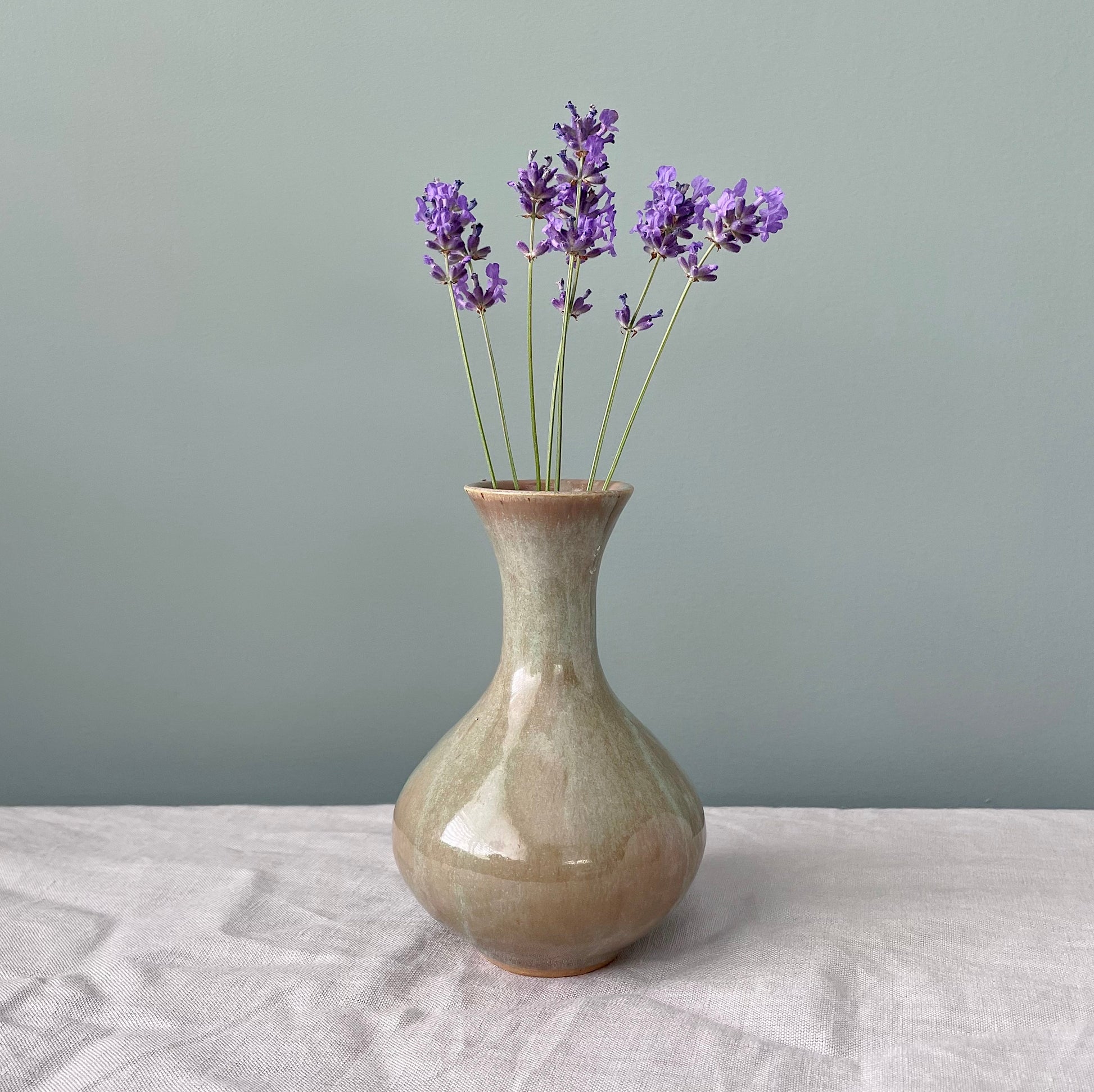 Add a touch of earthy charm to your decor with our Small Bellied Vase in Sage. The homemade glaze creates unique variations of sage green, making each vase one-of-a-kind. Its classic shape will complement any room in your home.